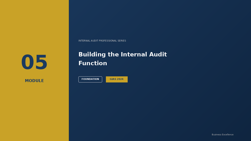 This is Module 5 of the 18-part Internal Audit Professional Series — the most comprehensive module in the Foundation Level with 65 slides and 10 templates.